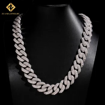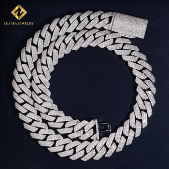 USA Local Stock Iced Out Necklace Hip Hop Jewelry Vvs Moissanite 18mm Big Cuban Link Chain Rapper 925 Sterling Silver